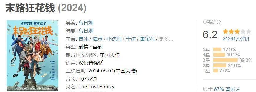 有了这么的前提,贾冰新片的豆瓣评分只消6.2分就很平时了吧?
